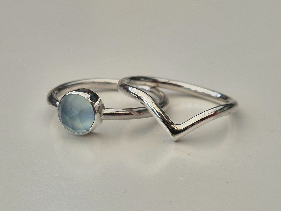 Labradorite, Pink Opal and Blue Chalcedony Ring.