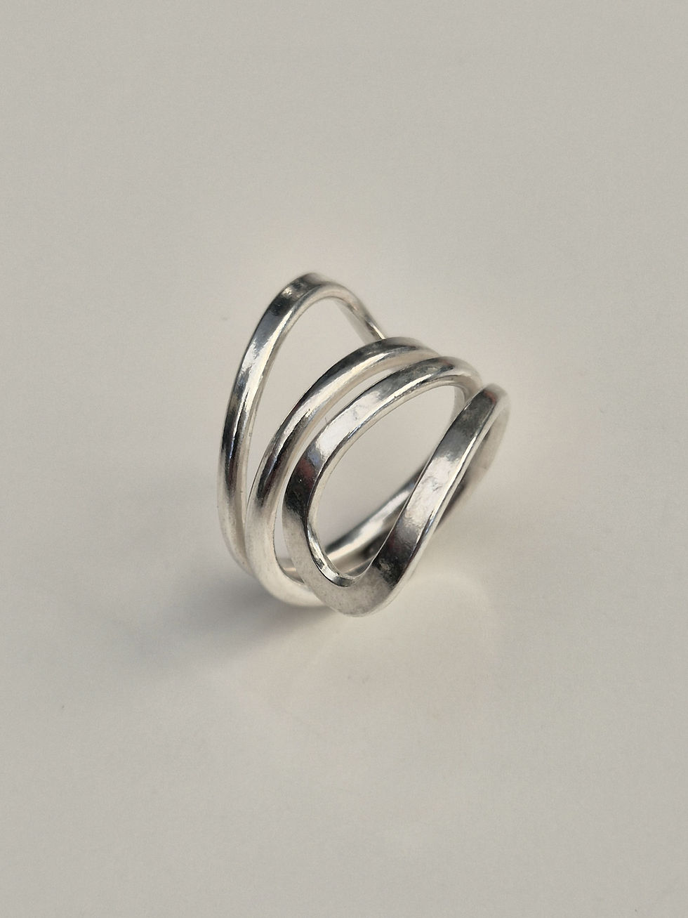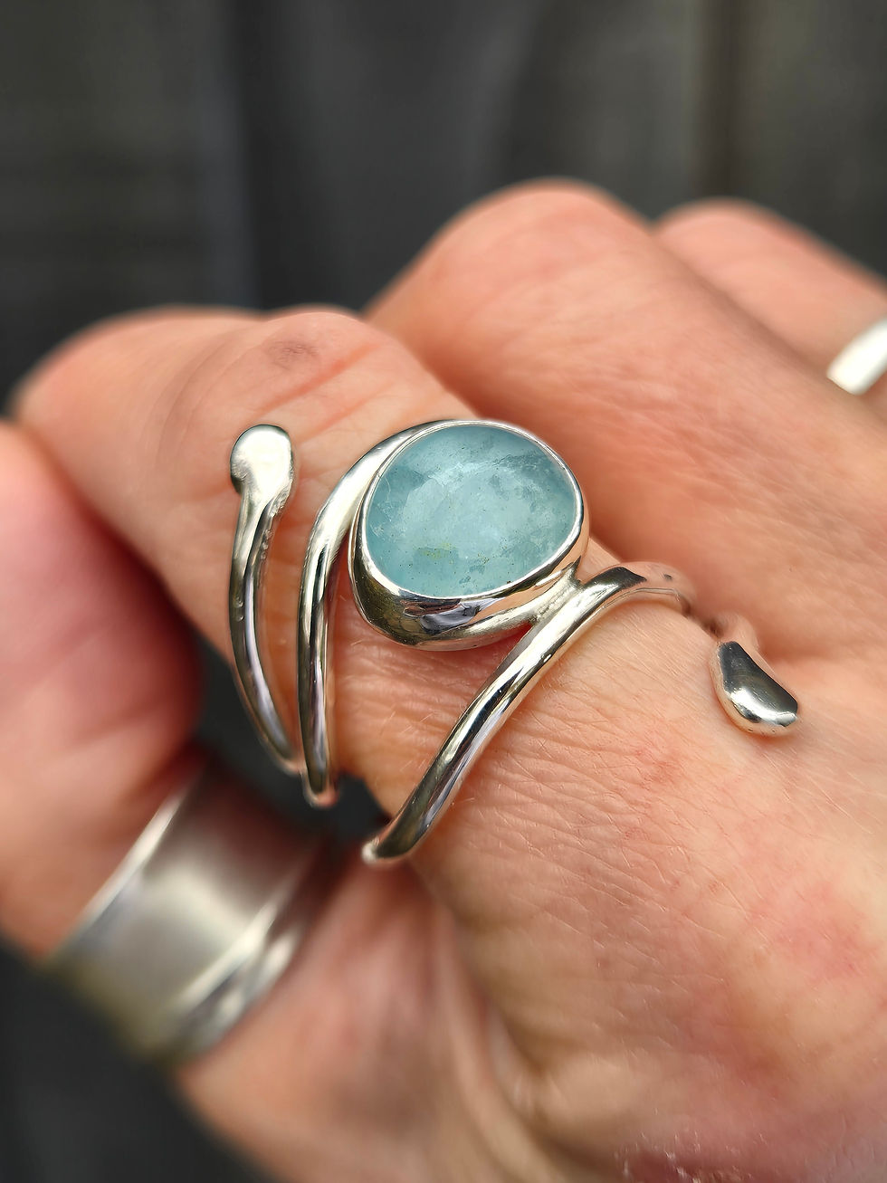 A Silver wrap ring with a Paua Shell, Larimar, Aquamarine and Turquoise.